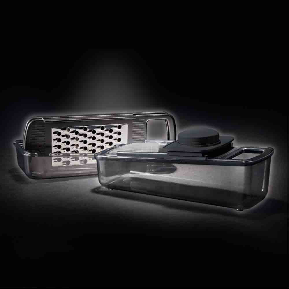 Prepare perfectly sliced, cut, or grated fruit and vegetables with the Scullery® Fresh Prep Box Mandoline. Constructed with food grade plastic and ultra sharp stainless steel blades, you will have no issues slicing up your ingredients. Featuring a handy box that collects your foods as you slice or grate, the mandoline is an all-in-one gadget that takes the hassle out of meal prepping. It includes 3 useful blades: a slicer, julienne, and a coarse grater so that you can create various different consistencies. For added convenience, it is dishwasher safe. Add other Fresh Prep favourites to your Scullery® Fresh Prep Box Mandoline for a complete collection.