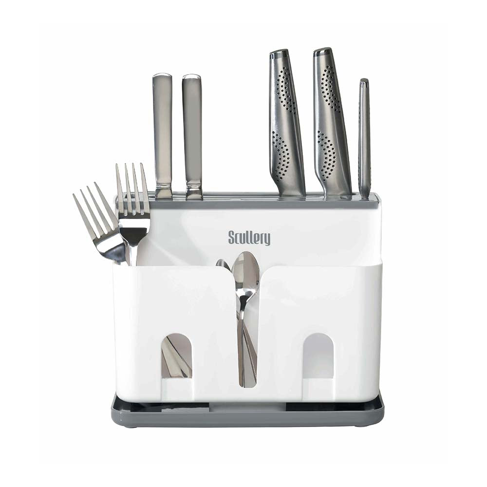Make doing the dishes simple with the Scullery® Pura II Cutlery Caddy. This cutlery caddy is a convenient and effective drying solution, designed to air dry cutlery, knives, and other utensils so you don’t have to spend time drying them yourself. It has two large compartments to organise your cutlery as it dries, as well as safe and secure slots for knives and scissors to keep sharp edges away from your fingers. It featured a well ventilated and non-slip base to prevent any bacteria formation or rust build up. Made from high-quality plastic material, this cutlery caddy is highly durable and designed to last. It makes doing the dishes simple and efficient.