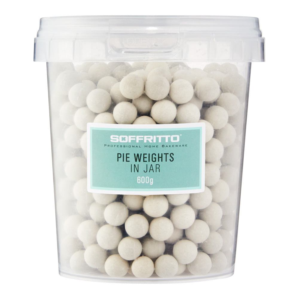 Enjoy making delicious pie crusts using the Soffritto® Professional Bake Pie Weights III. These pie weights work to keep pastry from shrinking or forming bubbles while it blind or parbakes encouraging the crust to crisp. That means no soggy pie bottoms! These ceramic weights do a superb job of holding the pastry shell in place during the baking and cooling process. With a total weight of 600g, there is plenty enough for all pie crust sizes. The Soffritto® Professional Bake Pie Weights III are washable, resusable and conveniently packaged in a lightweight plastic container. For long lasting results we recommend hand washing and allowing the weight s to air dry. Complete your baking set with the Soffritto® Professional Bake collection.