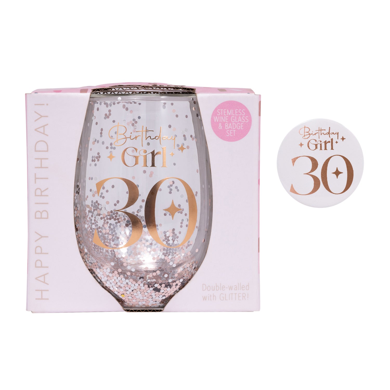 Splosh Celebration Glitter Stemless Glass & Badge Set