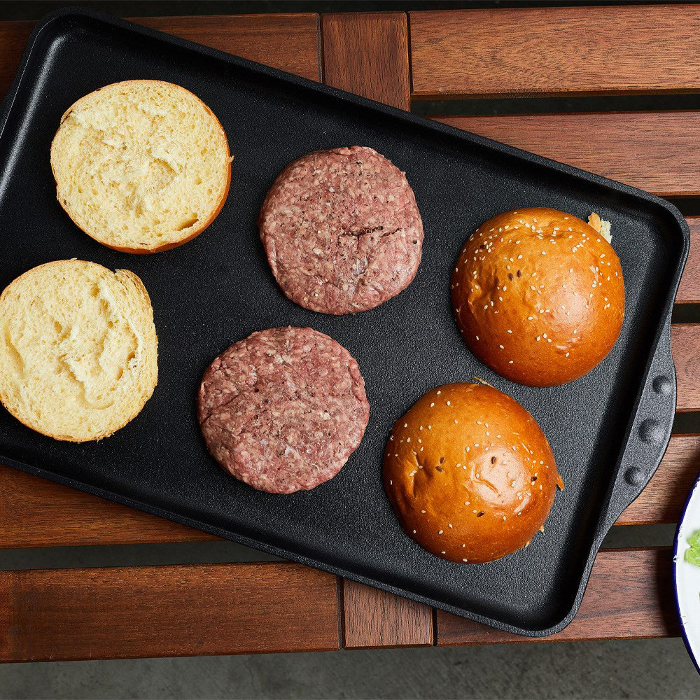 The Swiss Diamond XD Nonstick Flat Grill Pan is a nonstick double burner griddle that is PFOA-free and rivet-free for maximum protection against bacteria. The increase in diamonds creates a surface with food release properties like never before, providing years of trouble-free cooking and easy clean up. With the aluminium base, the Swiss Diamond XD Nonstick Flat Grill Pan creates a tougher, more corrosion-resistant layer that helps heat evenly transfer across the entire grill. Simply wash it off with warm water and a soft soapy sponge and your pan will be just like new. The Swiss Diamond XD Nonstick Flat Grill Pan is oven-safe up to 260°C (500°F) and made in Switzerland.